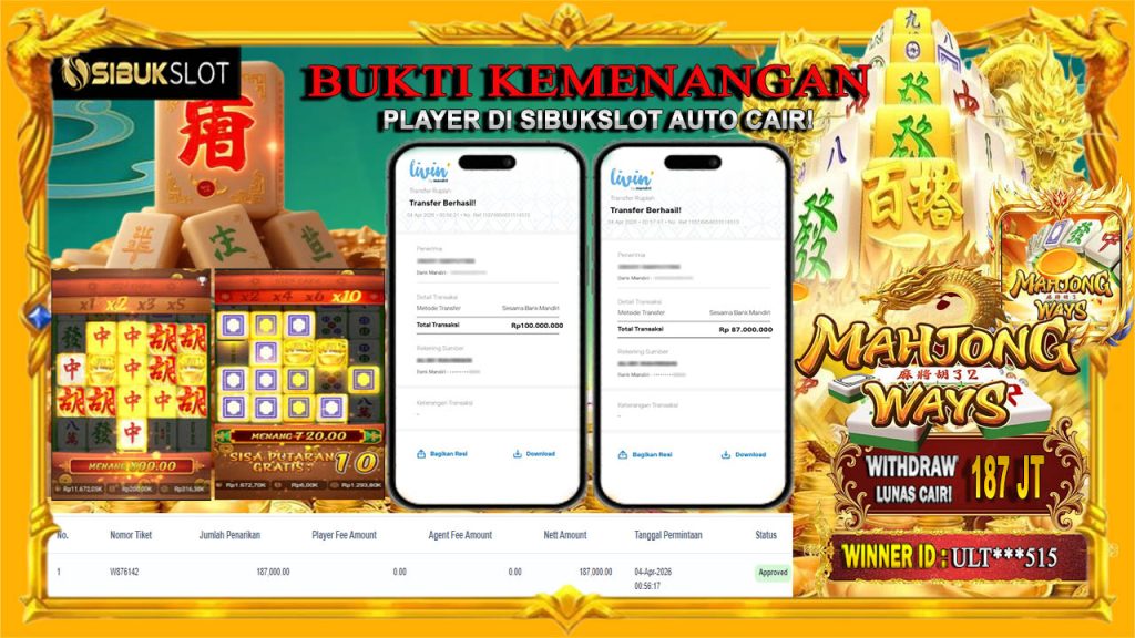 Bukti Kemenangan 04 APRIL 2026 Di Game mahjong ways 187 JUTA