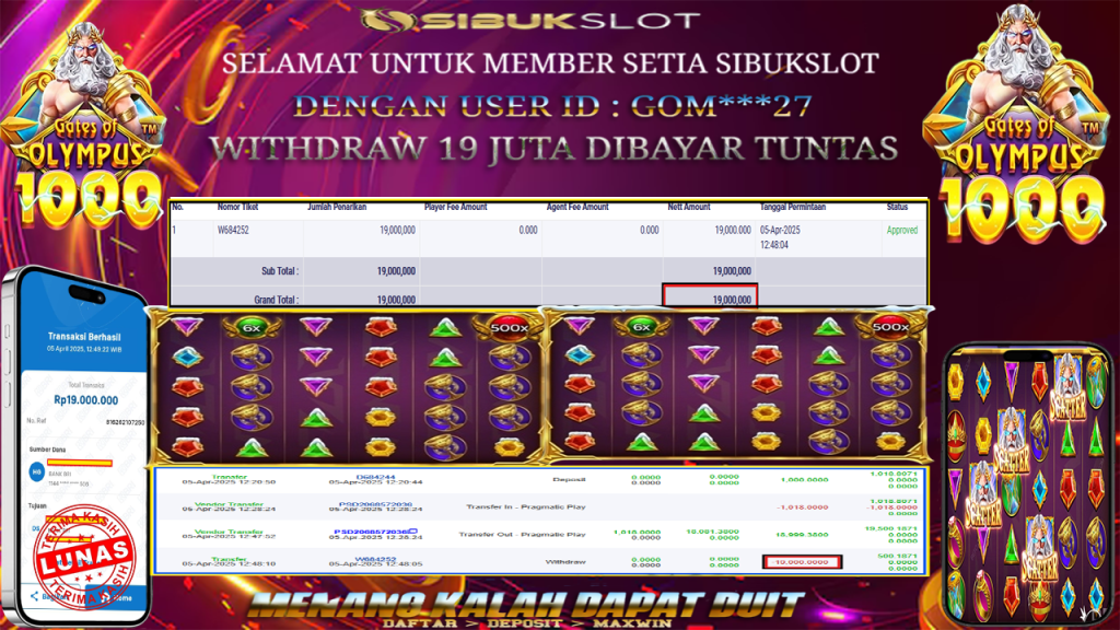 Bukti Kemenangan 5 April 2025 Di Game Gate of Olympus WD 19 Juta