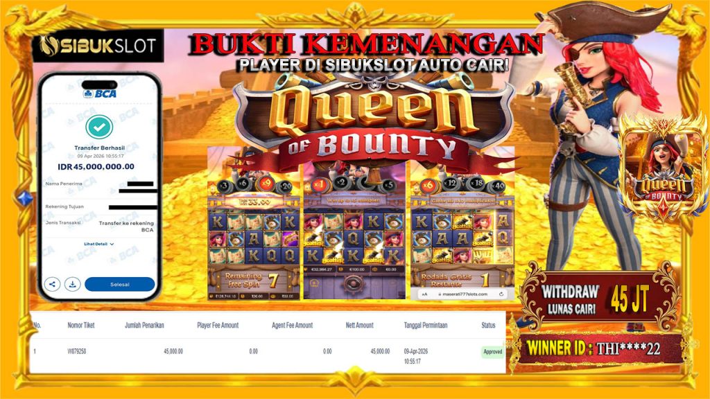 Bukti Kemenangan 09 APRIL 2026 Di Game Queen of Bounty 45 JUTA