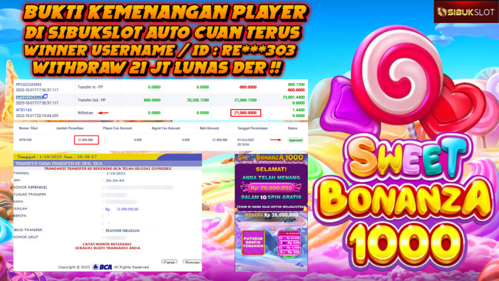 Bukti Kemenangan 1 Oktober 2025 Di Game Sweet Bonanza 1000 21 Juta