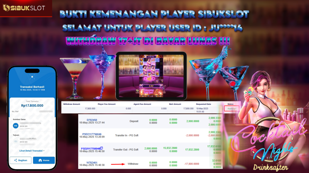 Bukti Kemenangan 10 Mei 2025 Di Game Cocktail Nights WD 17.8 Juta