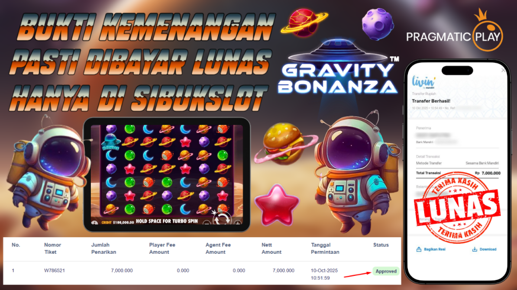 Bukti Kemenangan 10 Oktober 2025 Di Game Gravity Bonanza 7 Juta