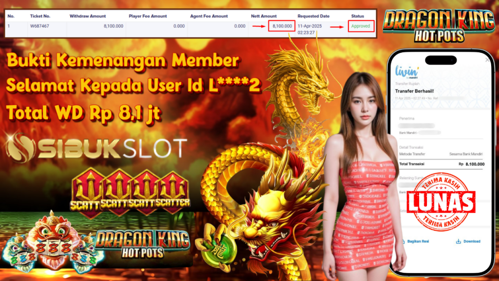 Bukti Kemenangan 11 April 2025 Di Game Dragon King Hotpots WD 8.1 Juta