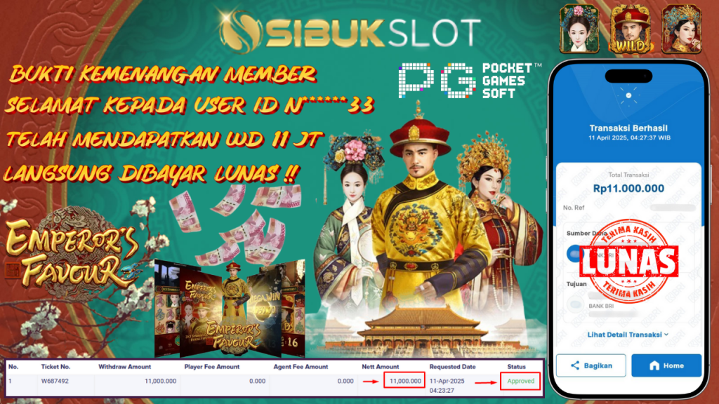 Bukti Kemenangan 11 April 2025 Di Game Emperors Favour WD 11 Juta