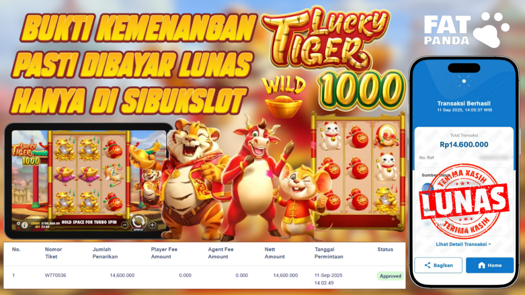 Bukti Kemenangan 11 September 2025 Di Game Lucky Tiger 1000 14.6 Juta
