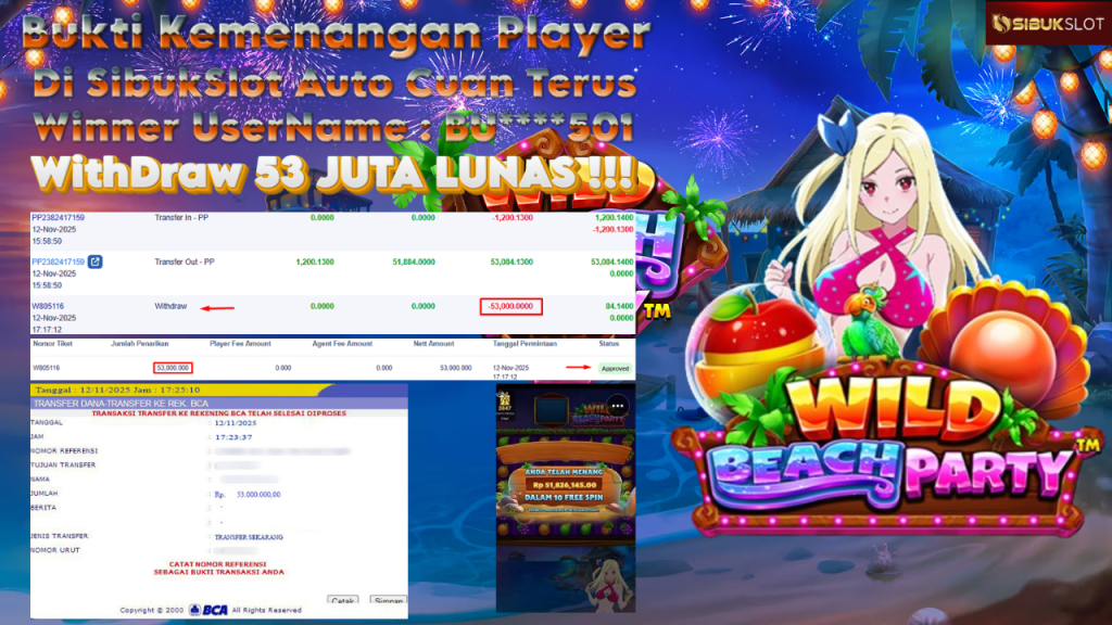 Bukti Kemenangan 12 November 2025 Di Game Wild Beach Party 53 Juta