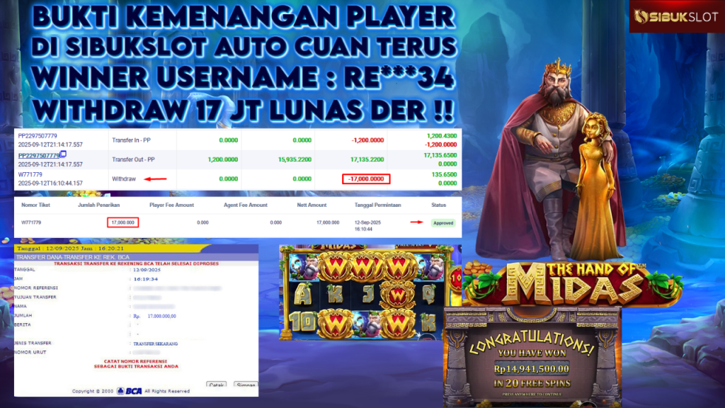 Bukti Kemenangan 12 September 2025 Di Game The Hand of Midas 17 Juta
