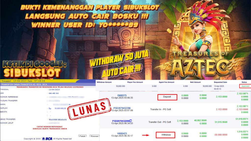 Bukti Kemenangan 13 April 2025 Di Game Treasures of Aztec WD 50 Juta