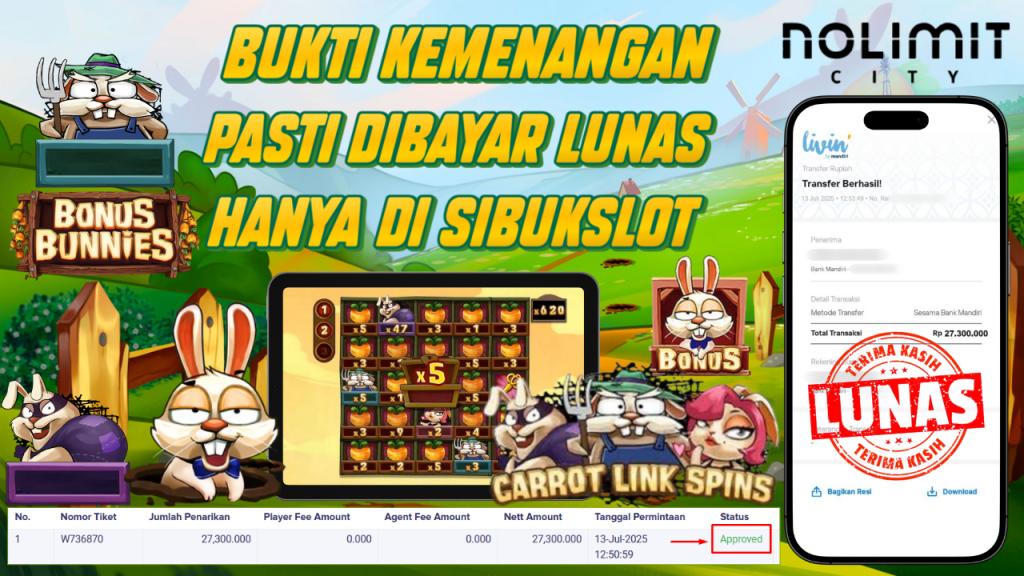 Bukti Kemenangan 13 Juli 2025 Di Game Bonus Bunnies WD 23.7 Juta