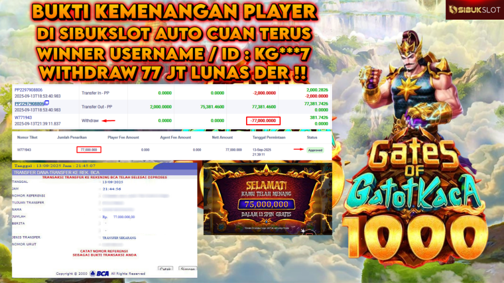Bukti Kemenangan 13 September 2025 Di Game Gates of Gatot Kaca 1000 77 Juta