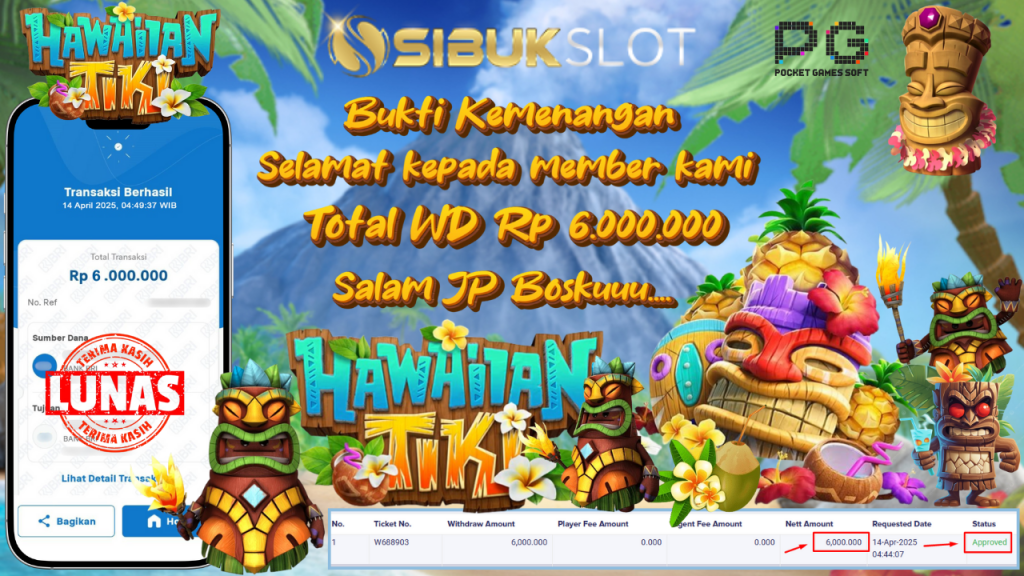 Bukti Kemenangan 14 April 2025 Di Game Hawaiian Tiki WD 6 Juta