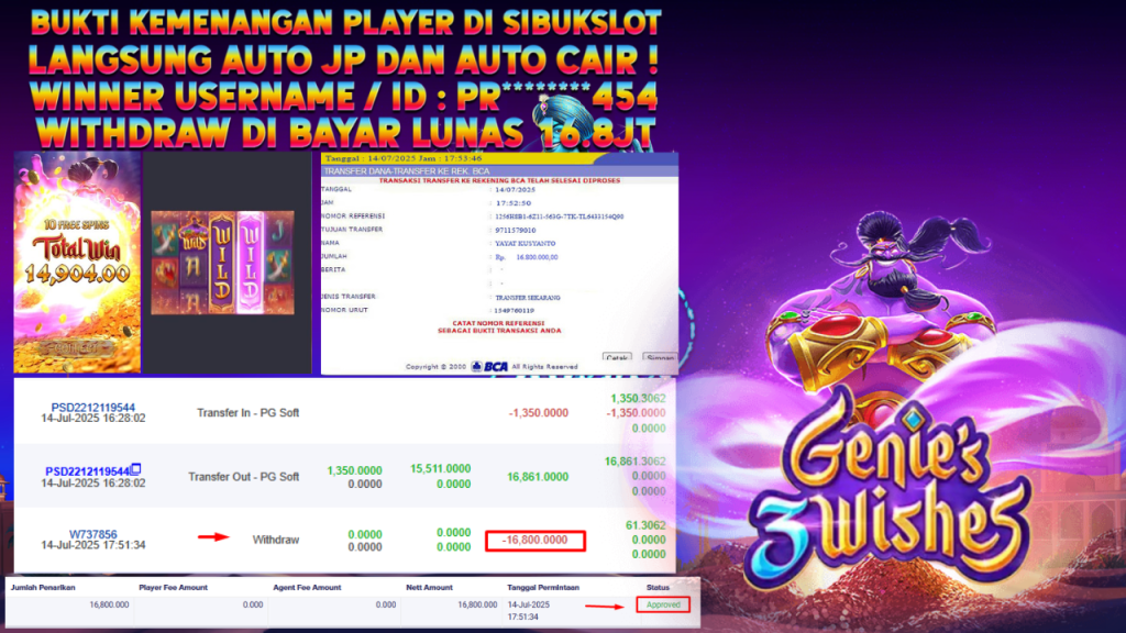 Bukti Kemenangan 14 Juli 2025 Di Game Genie’s 3 Wishes WD 16.8 Juta