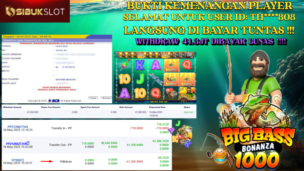 Bukti Kemenangan 16 Mei 2025 Di Game Big Bass Bonanza 1000 WD 41.3 Juta