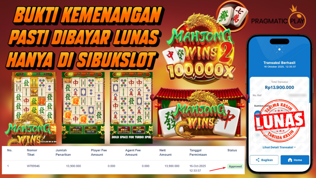 Bukti Kemenangan 16 Oktober 2025 Di Game Mahjong Wins 2 13.9 Juta