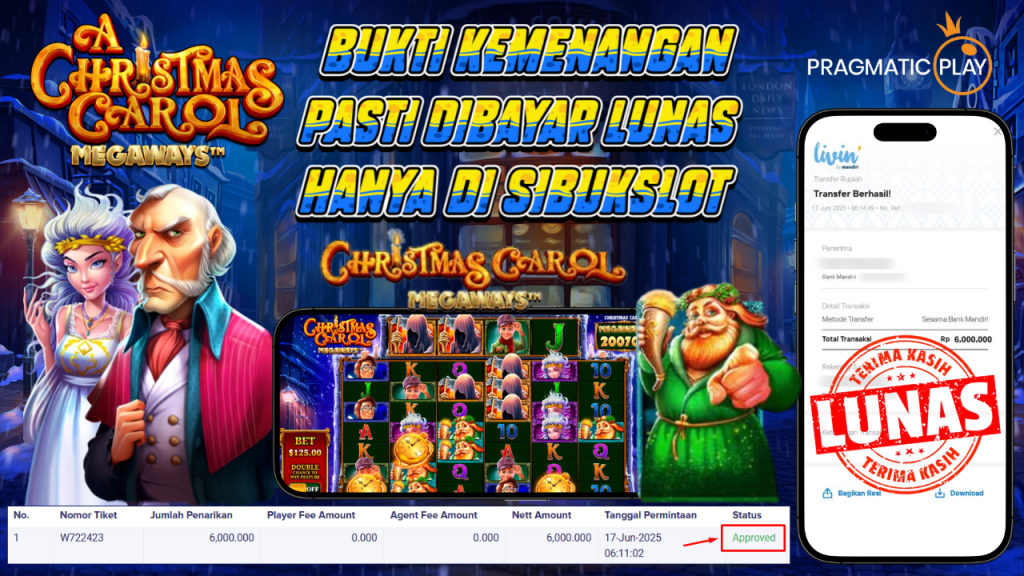 Bukti Kemenangan 17 Juni 2025 Di Game Christmas Carol Megaways WD 6 Juta