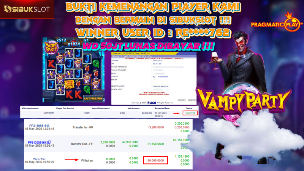 Bukti Kemenangan 19 Mei 2025 Di Game Vampy Party WD 50 Juta