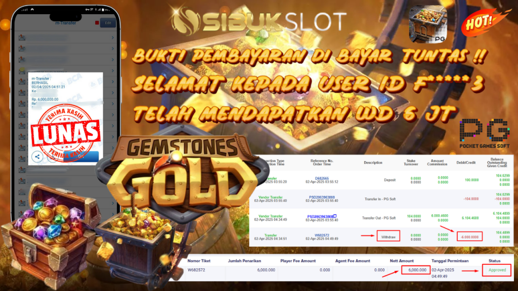 Bukti Kemenangan 2 April 2025 Di Game Gemstones Gold WD 6 Juta