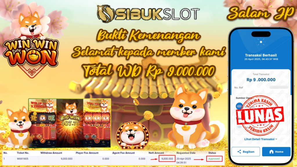 Bukti Kemenangan 20 April 2025 Di Game Win Win Won WD 9 Juta