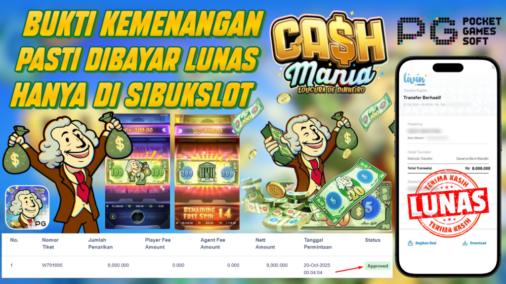 Bukti Kemenangan 20 Oktober 2025 Di Game Cash Mania 8 Juta