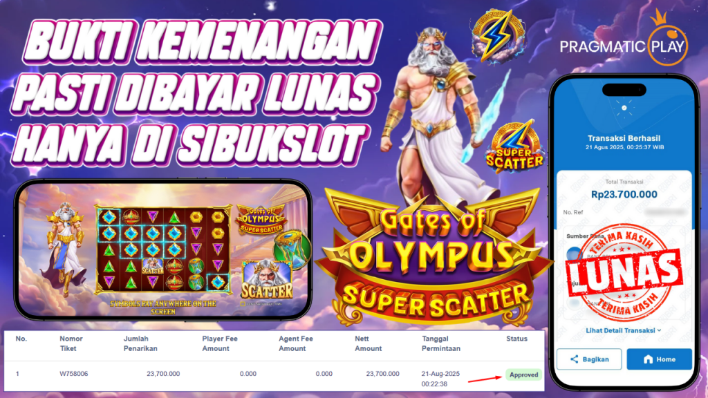 Bukti Kemenangan 21 Agustus 2025 Di Game Gates of Olympus Super Scatter WD 23.7 Juta