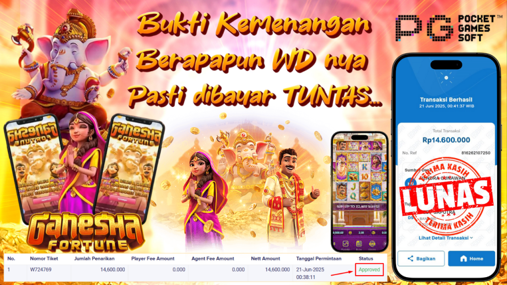 Bukti Kemenangan 21 Juni 2025 Di Game Ganesha Fortune WD 14.6 Juta