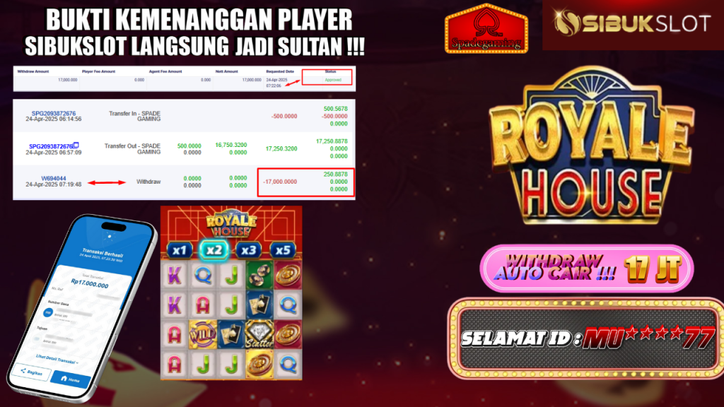 Bukti Kemenangan 24 April 2025 Di Game Royale House WD 17 Juta