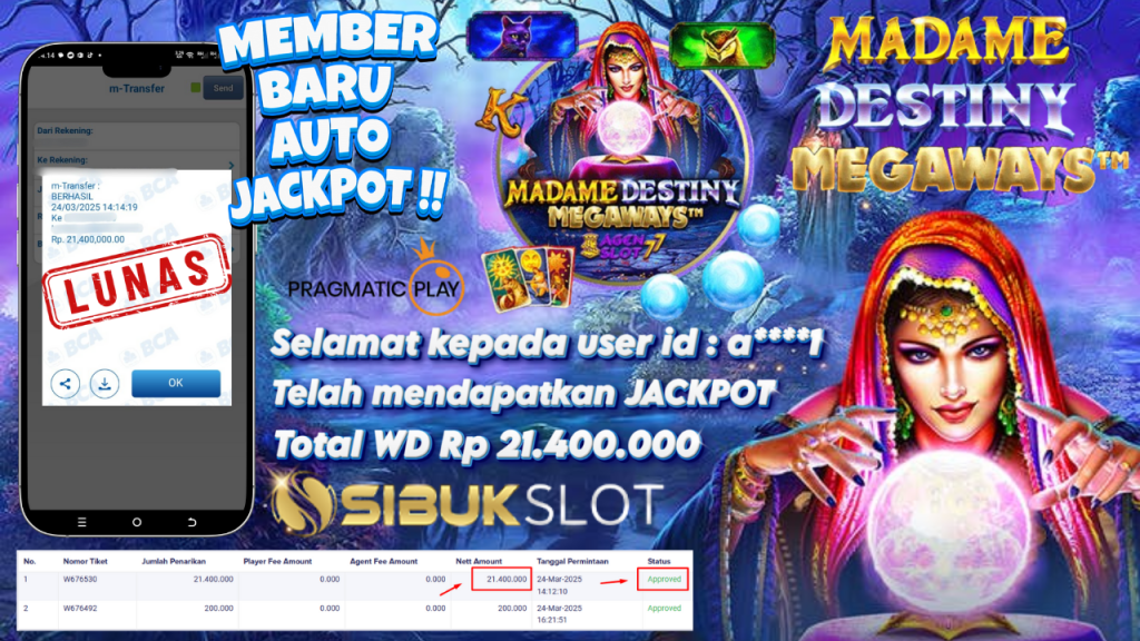 Bukti Kemenangan 24 Maret 2025 Di Game Madame Destiny Megaways WD 21.4 Juta