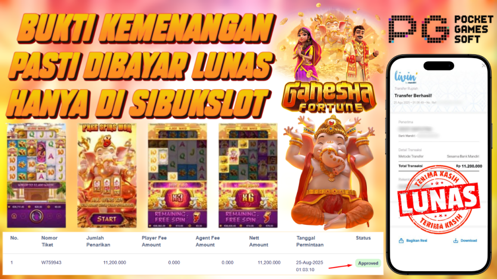 Bukti Kemenangan 25 Agustus 2025 Di Game Ganesha Fortune WD 11.2 Juta