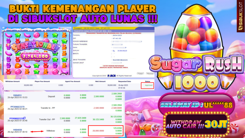 Bukti Kemenangan 26 April 2025 Di Game Sugar Rush 1000 WD 30 Juta