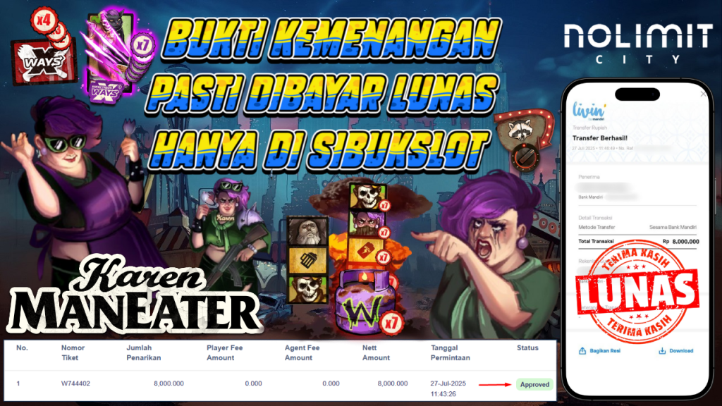 Bukti Kemenangan 27 Juli 2025 Di Game Karen Maneater WD 8 Juta
