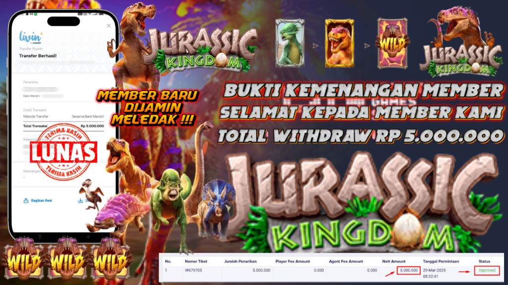 Bukti Kemenangan 29 Maret 2025 Di Game Jurassic Kingdom WD 5 Juta