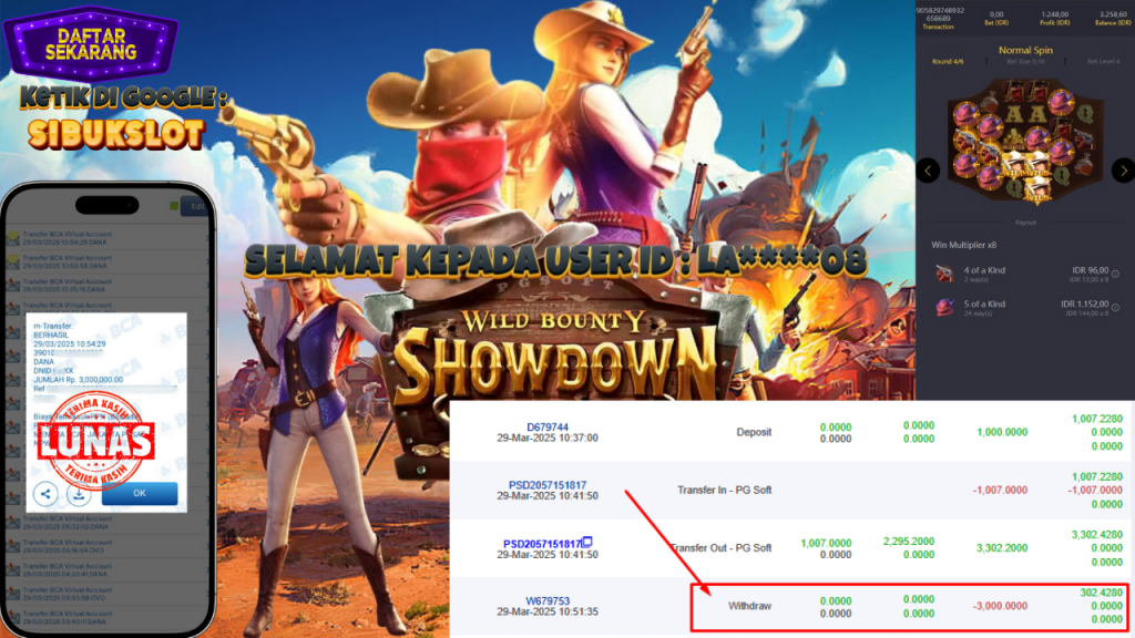 Bukti Kemenangan 29 Maret 2025 Di Game Wild Bounty Showdown WD 3 Juta