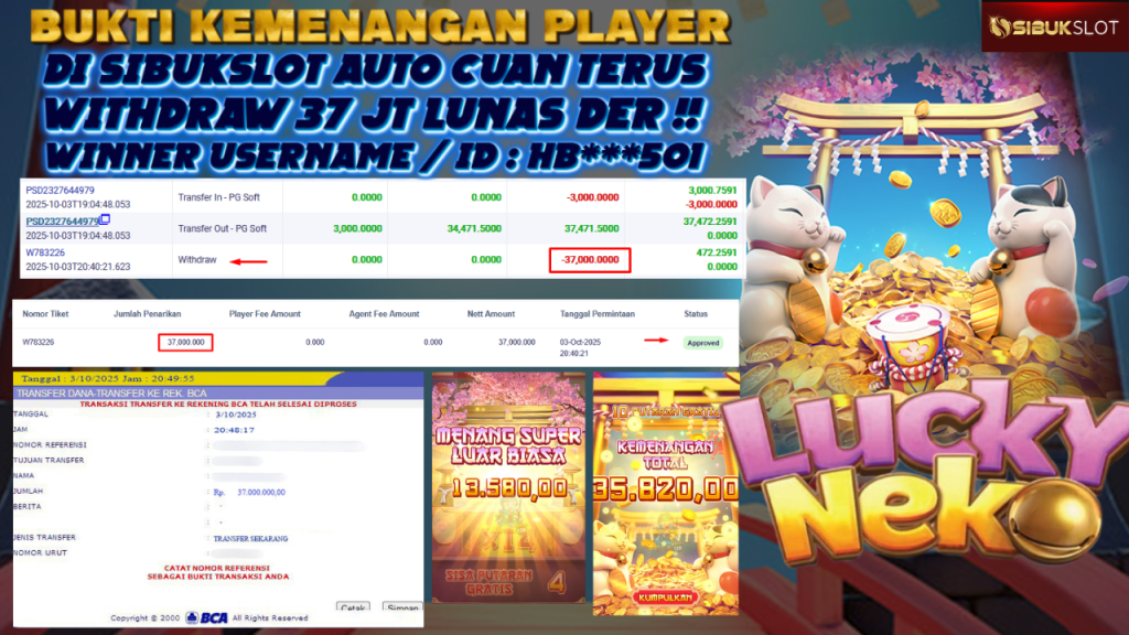 Bukti Kemenangan 3 Oktober 2025 Di Game Lucky Neko 37 Juta