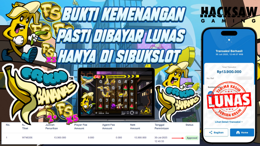 Bukti Kemenangan 30 Juli 2025 Di Game FRKN Bananas WD 13.9 Juta