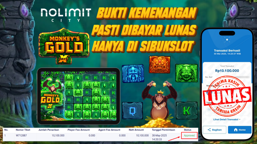 Bukti Kemenangan 30 Mei 2025 Di Game Monkey’s Gold xPays WD 10.1 Juta
