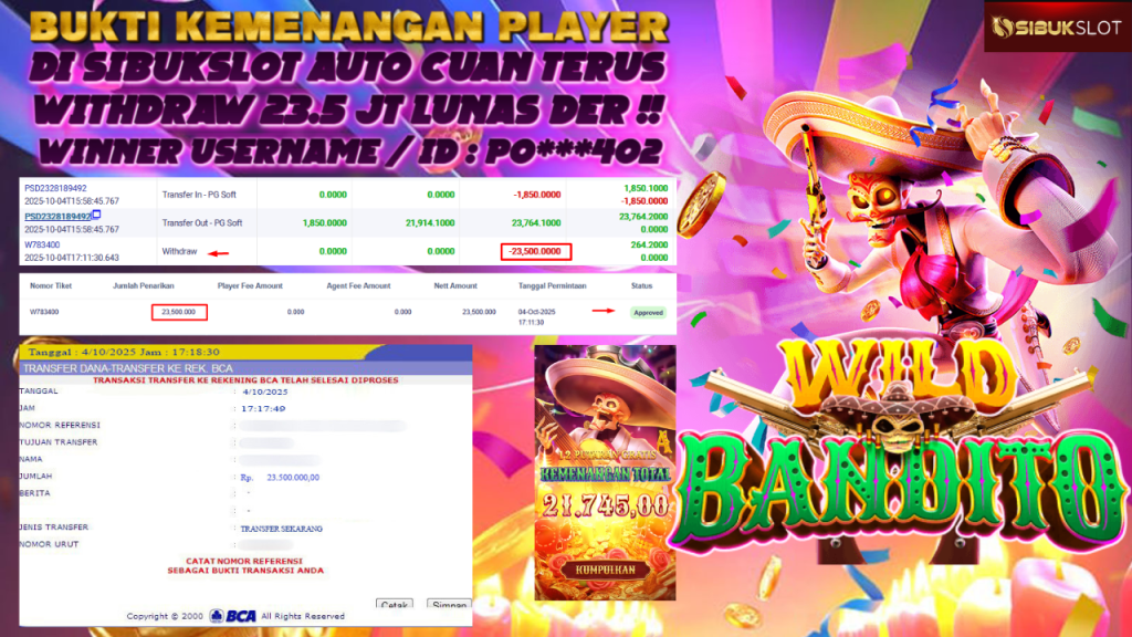 Bukti Kemenangan 4 Oktober 2025 Di Game Wild Bandito 23.5 Juta