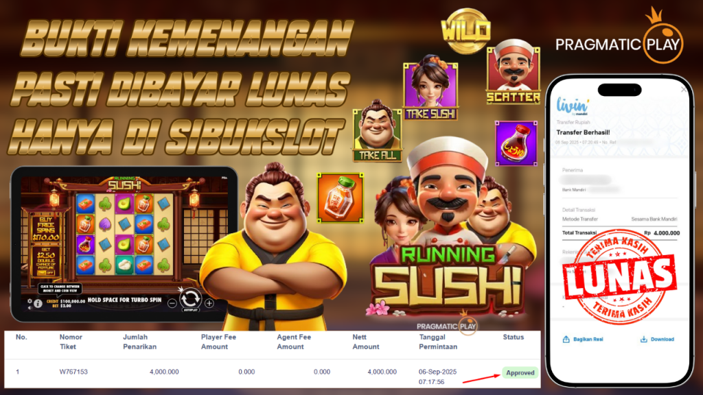 Bukti Kemenangan 6 September 2025 Di Game Running Sushi WD 4 Juta