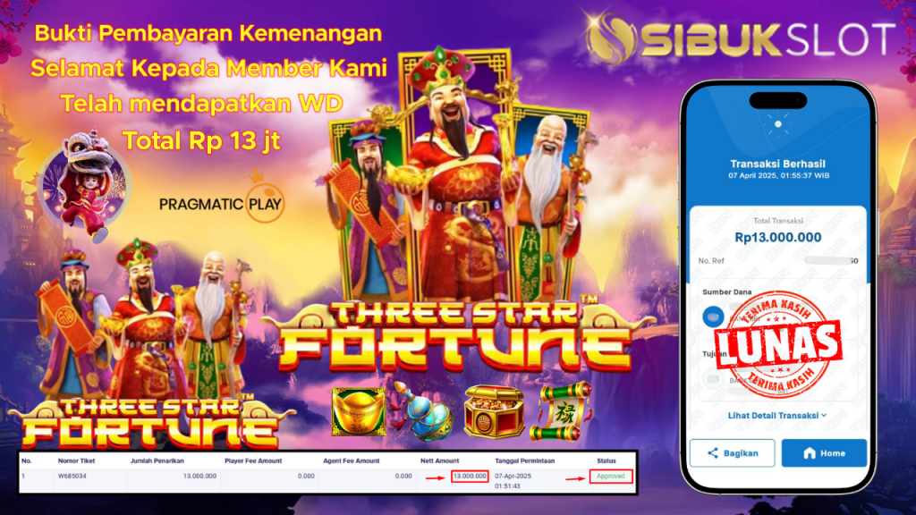 Bukti Kemenangan 7 April 2025 Di Three Star Fortune Game WD 13 Juta