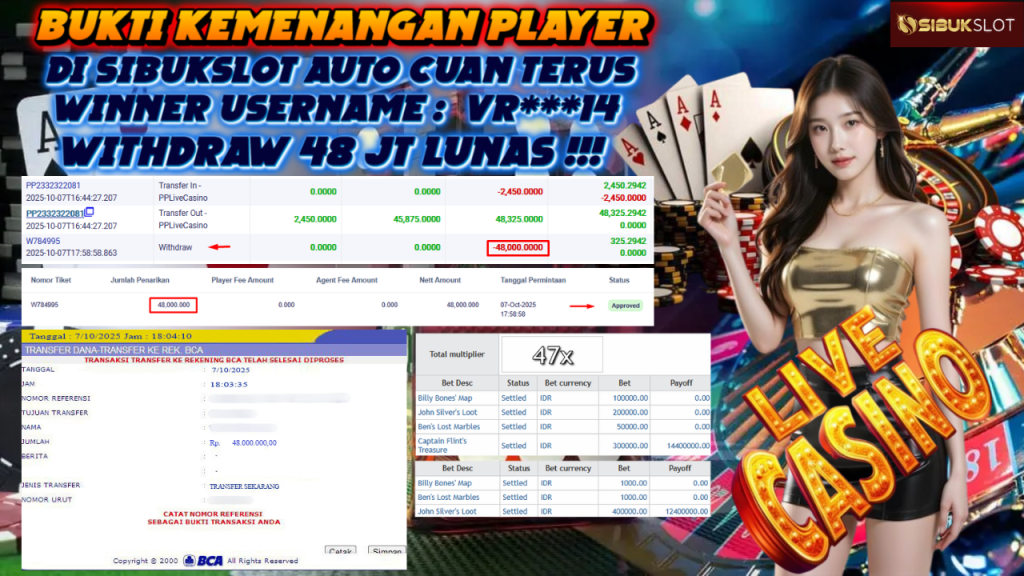 Bukti Kemenangan 7 Oktober 2025 Di Game Live Casino 48 Juta