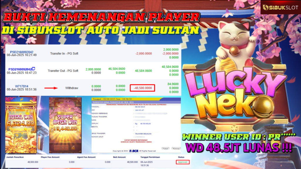 Bukti Kemenangan 8 Juni 2025 Di Game Lucky Neko WD 48.5 Juta