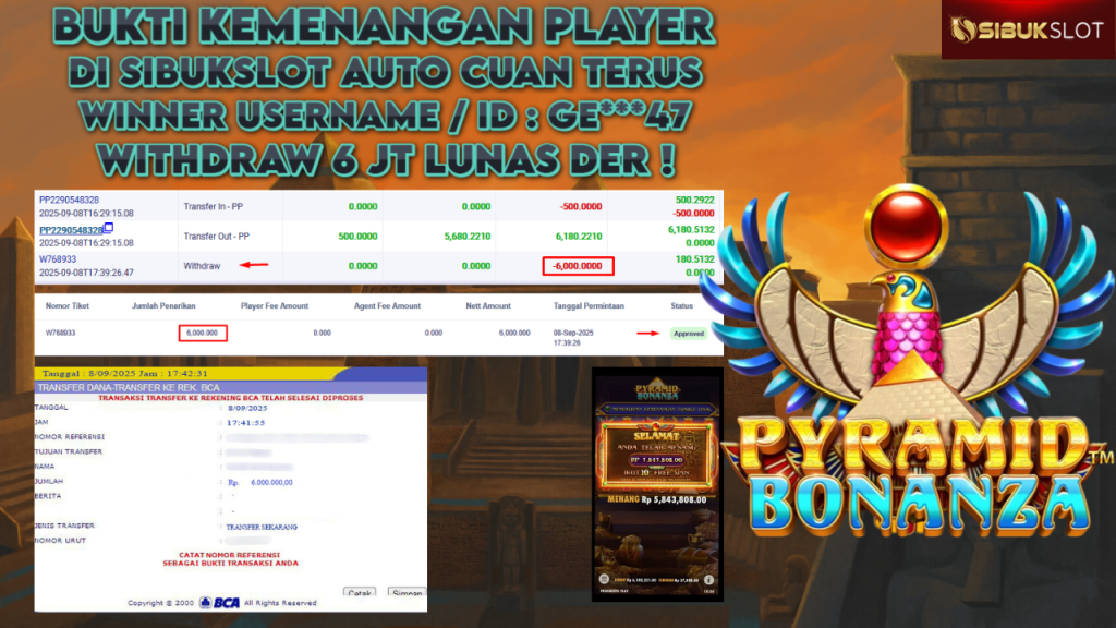 Bukti Kemenangan 8 September 2025 Di Game Pyramid Bonanza Wild 6 Juta
