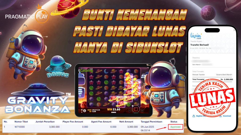 Bukti Kemenangan 9 Juni 2025 Di Game Gravity Bonanza WD 3.3 Juta