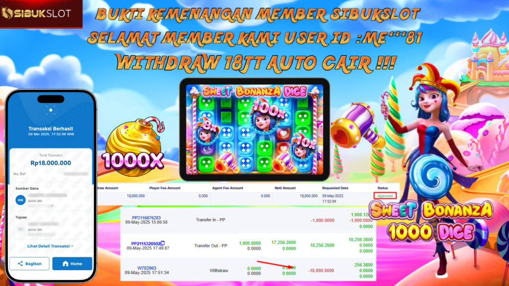Bukti Kemenangan 9 Mei 2025 Di Game Sweet Bonanza 1000 Dice WD 18 Juta