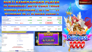 Bukti Kemenangan 5 Agustus 2025 Di Game Starlight Princess™ 1000 WD 96 Juta